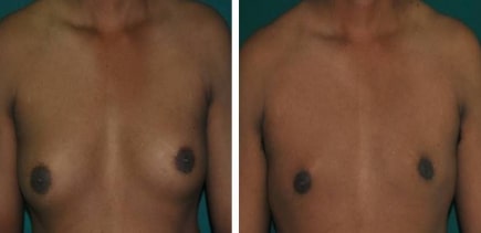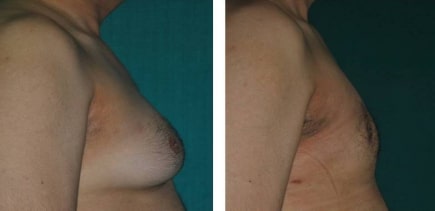 If there is significant sagging of skin, the male breasts can be corrected by open surgery which will remove the excess fat, breast tissue and skin. The location of the scar could be around the areola or on both sides of the areola depending on the severity of sagging.