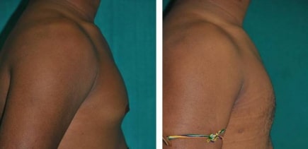 Liposuction alone will not remove tough gland tissue. But the breast tissue can be removed completely through small incision. In anterior pull through technique, the gland tissue is completely removed under direct vision using a small incision under the areola. The traditional half circle incision is not needed. The advantage here is that the scar is very small. This is quite important for Indian skin which is prone for thick scars.